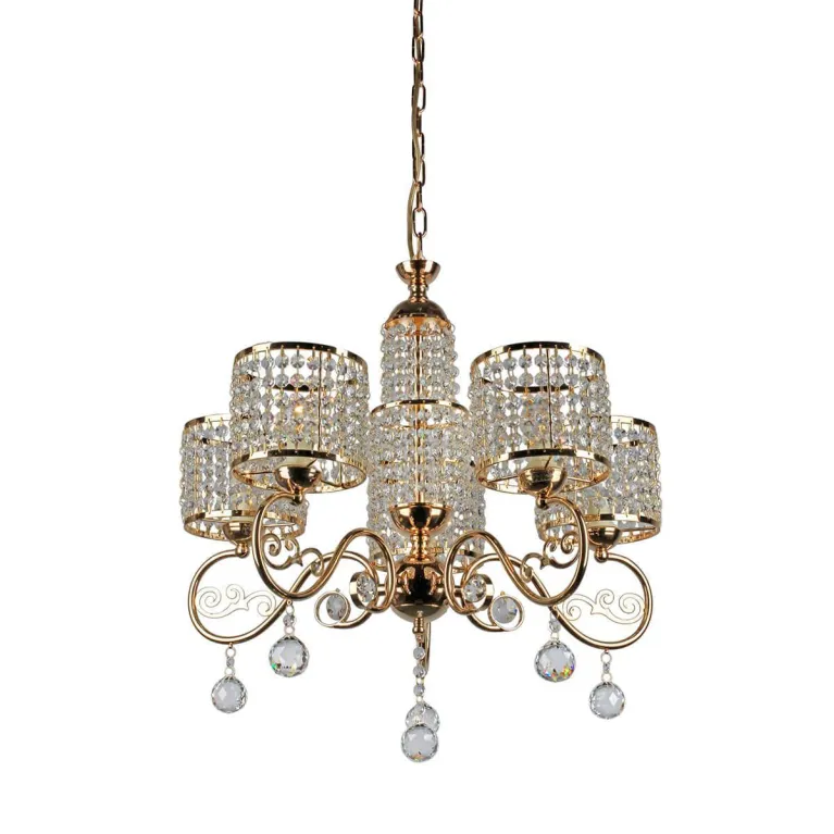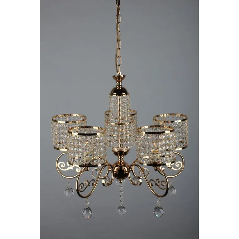 Люстра оснащена пятью лампами, которые имеют цоколь E14 и могут быть как накаливания, так и светодиодными. Это обеспечивает яркое и равномерное освещение пространства, создавая комфортную атмосферу в вашем доме. Суммарная мощность ламп - 300 Вт, что эквивалентно современным светодиодным решениям.