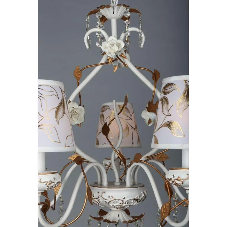 Люстра оснащена пятью источниками света с цоколем E27, что позволяет использовать лампы различных типов и мощностей. Суммарная мощность ламп составляет 60 Вт, что обеспечивает яркое и равномерное освещение пространства.