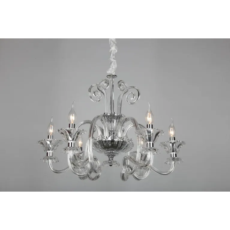 Люстра совместима с лампами типа накаливания, энергосберегающими и светодиодными, что позволяет выбирать источники света в зависимости от ваших предпочтений и потребностей. Такое решение обеспечивает максимальную гибкость в использовании и долговечность эксплуатации.
