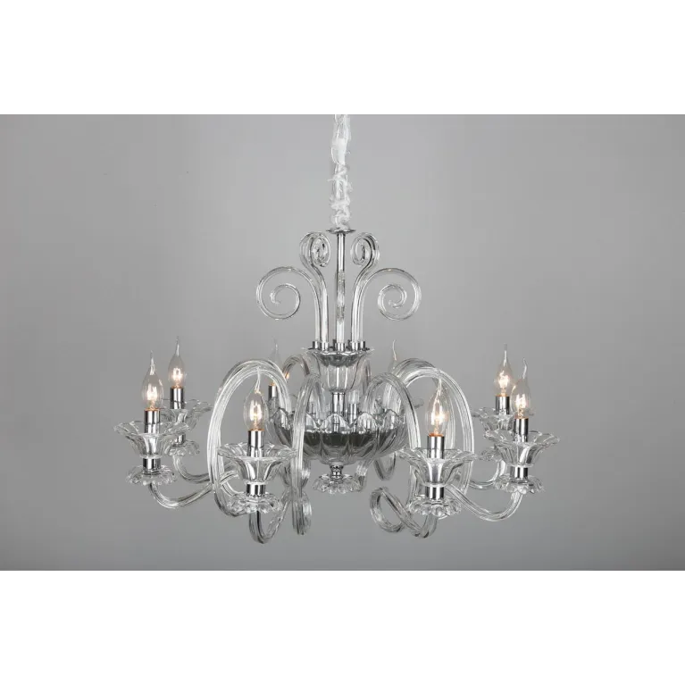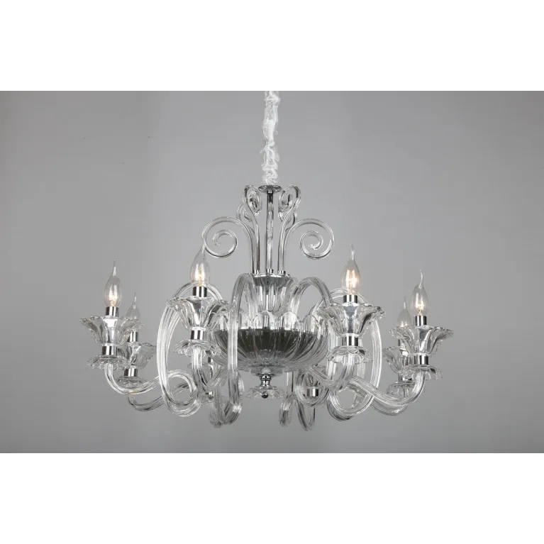 Люстра оснащена восемью источниками света с цоколем E14, что позволяет использовать различные типы ламп, включая энергосберегающие и светодиодные. Суммарная мощность ламп - 320 Вт, что обеспечивает яркое и равномерное освещение пространства.