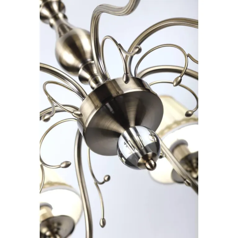 Люстра оснащена пятью лампами, что обеспечивает яркое и равномерное освещение пространства. Она идеально подходит для помещений с высокими потолками благодаря своей высоте в 70 см. Основание выполнено из прочного металла, что гарантирует долговечность и надежность конструкции.