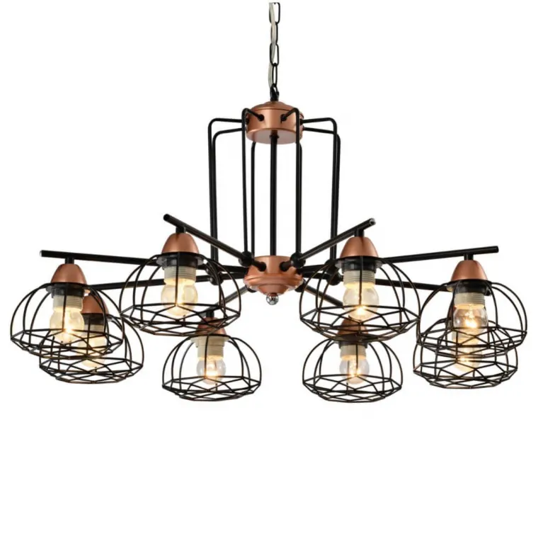 Люстра оснащена восемью лампами типа E14, что позволяет использовать как традиционные лампы накаливания, так и энергосберегающие или светодиодные, обеспечивая максимальную гибкость в выборе источников света. Суммарная мощность ламп - 320 Вт, что обеспечивает яркое и равномерное освещение пространства.