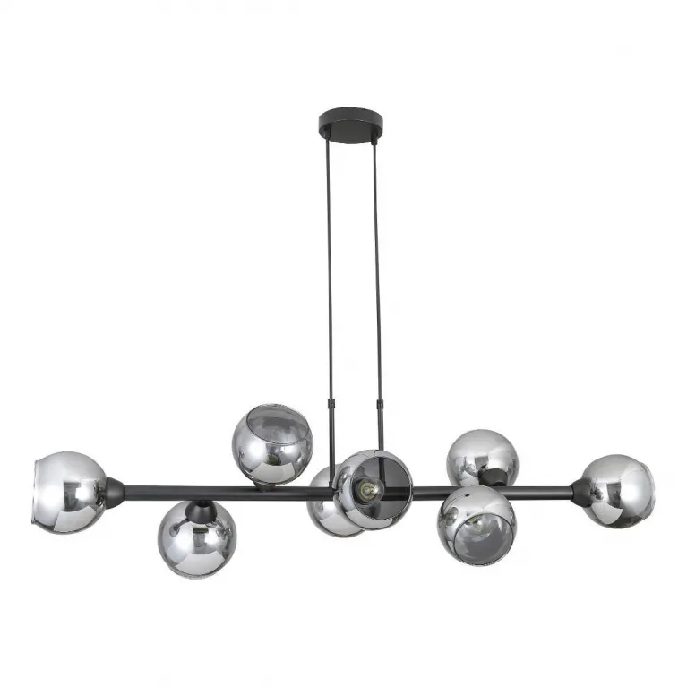 Корпус люстры выполнен из прочного металла с черным матовым покрытием, который прекрасно гармонирует с различными стилями интерьера. Плафоны изготовлены из высококачественного стекла, придающего свету мягкие очертания и утонченную элегантность.