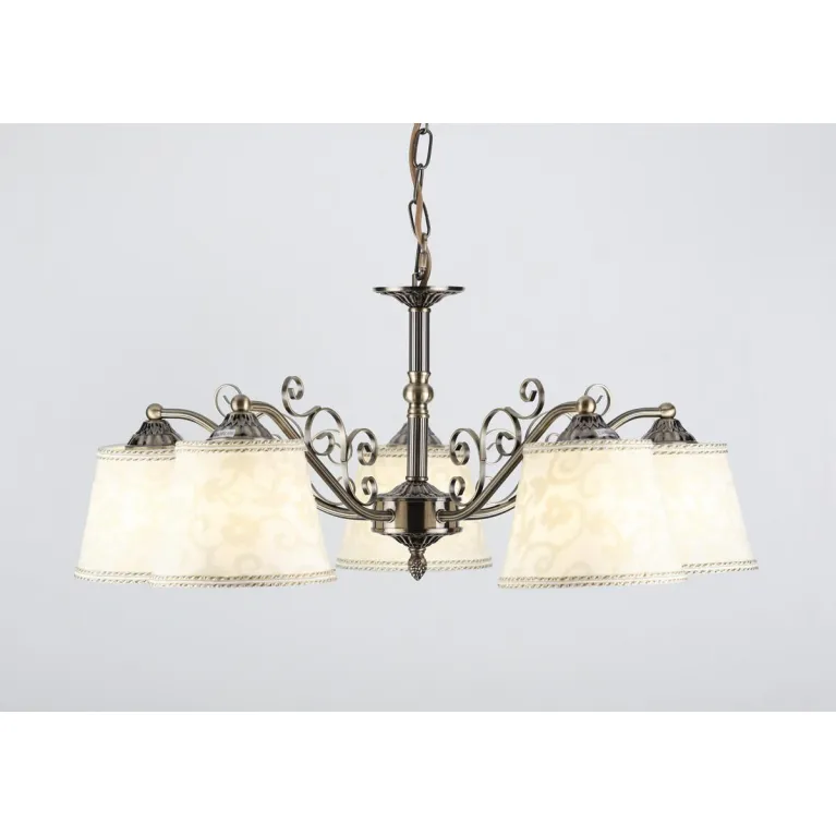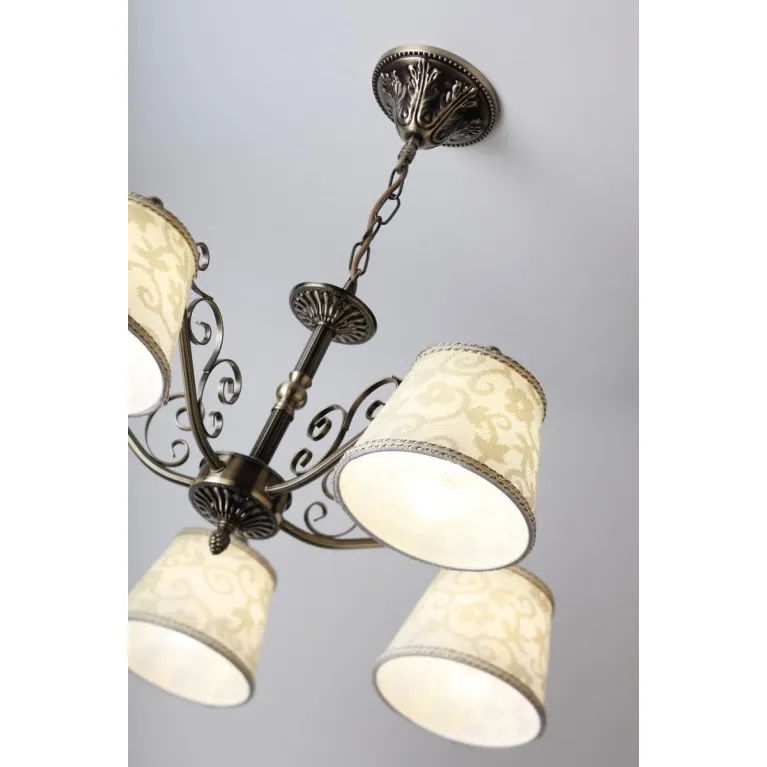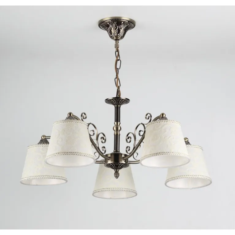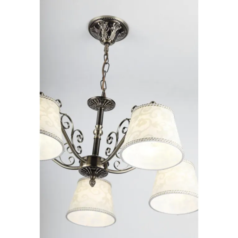 Люстра оснащена пятью лампами, что обеспечивает яркое и равномерное освещение. Она совместима с лампами типа E14, что позволяет использовать как традиционные лампы накаливания, так и энергосберегающие или светодиодные лампы, что добавляет светильнику универсальности и современного шарма.