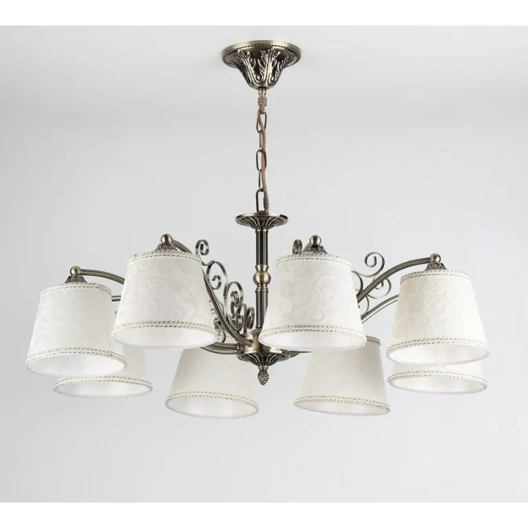 Светильник имеет внушительные размеры и рассчитан на лампы мощностью до 8x60 Вт, что обеспечивает яркое и равномерное освещение пространства. Патрон E14 позволяет использовать как традиционные лампы накаливания, так и энергосберегающие или светодиодные лампы, в зависимости от ваших предпочтений и потребностей.