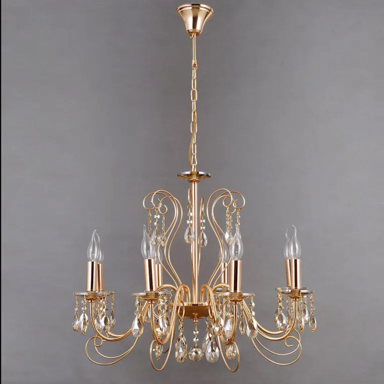 Люстра оснащена семью лампами, что обеспечивает яркое и равномерное освещение. Она прекрасно подходит для просторных гостиных, столовых или спален, добавляя им уюта и элегантности. Основание выполнено из прочного металла, что гарантирует долговечность и надежность конструкции.
