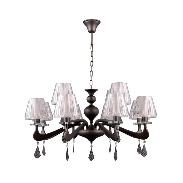 Люстра оснащена семью источниками света, что обеспечивает яркое и равномерное освещение пространства. Патрон E14 позволяет использовать лампы мощностью до 40 Вт, что гарантирует достаточный уровень освещенности и создает уютную атмосферу в помещении. Основание выполнено из прочного металла, что гарантирует долговечность и надежность конструкции.