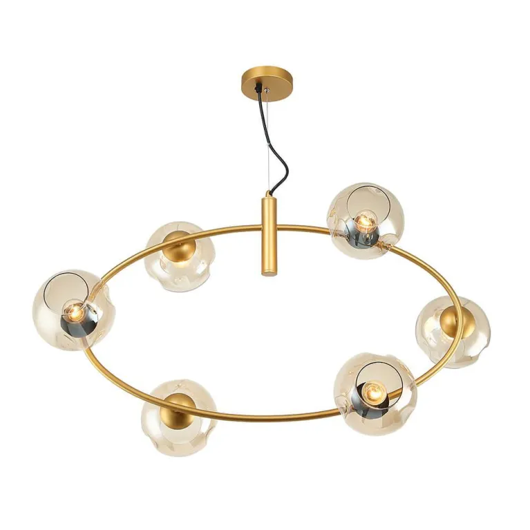 Благодаря подвесной конструкции, люстра легко монтируется на потолок и обеспечивает удобный доступ для замены ламп. Ее компактные размеры (высота 400 мм, диаметр 500 мм) позволяют разместить ее в помещении с любым интерьером и высотой потолков.