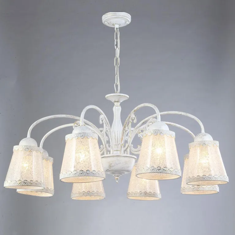 Люстра оснащена семью источниками света, что обеспечивает яркое и равномерное освещение всей комнаты. Она идеально подходит для гостиной, столовой или спальни, добавляя уюта и гармонии вашему дому. Основание изготовлено из прочного металла, что гарантирует долговечность и надежность конструкции.