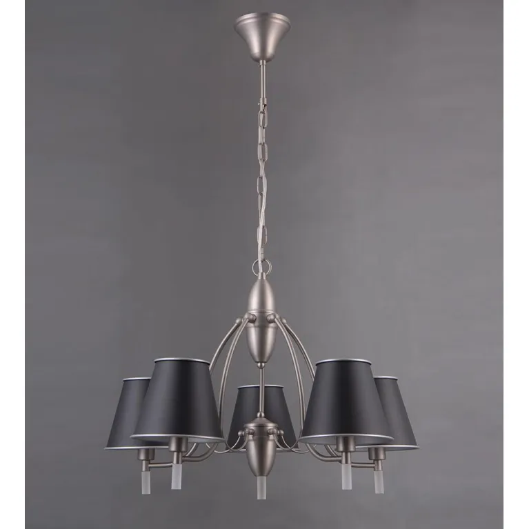 Люстра оснащена семью лампами, что обеспечивает яркое и равномерное освещение пространства. Она изготовлена из прочного металла с черным матовым покрытием, который прекрасно гармонирует с различными стилями интерьера. Плафоны выполнены из белого матового стекла, придающего свету мягкость и деликатность.