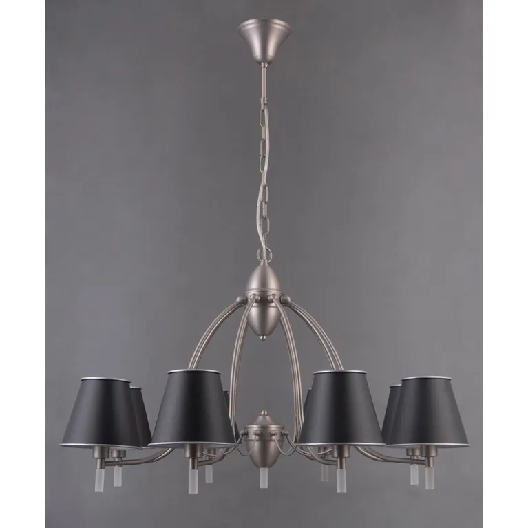 Люстра оснащена семью лампами, что обеспечивает яркое и равномерное освещение пространства. Она идеально подходит для помещений с высокими потолками, так как её высота составляет 1200 мм. Корпус выполнен из прочного металла с черным матовым покрытием, который придает изделию современный и стильный вид.