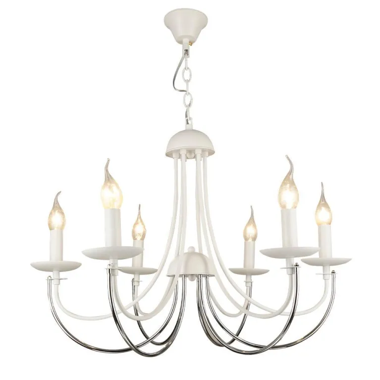 Люстра оснащена шестью источниками света с цоколем E14, что позволяет использовать различные типы ламп, включая энергосберегающие и светодиодные. Суммарная мощность ламп составляет 36 Вт, что обеспечивает яркое и равномерное освещение пространства.