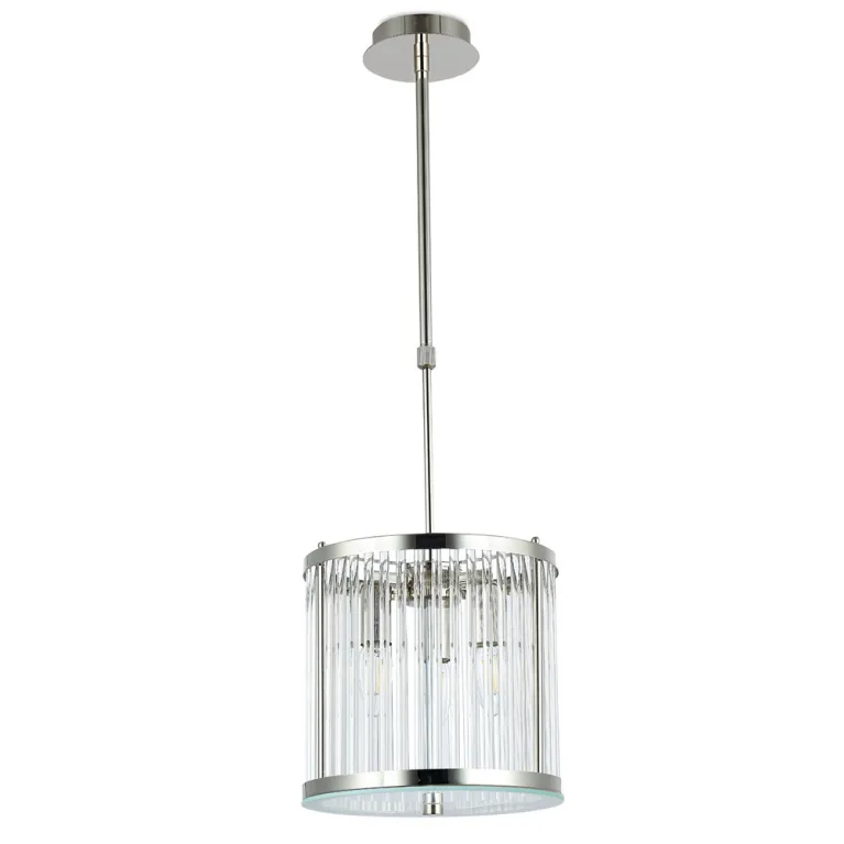 Преобладающий цвет плафонов: Прозрачный, арматуры: Никель; материал изготовления арматуры: Металл, размеры, мм: / высота 785 / диаметр 250. Общая мощность – 120 Ватт, а максимальная площадь освещения до 6 м2. Основной тип ламп, предусмотренный производителем: Накаливания с цоколем E14. В зависимости от предпочтений можно использовать лампы теплового, холодного или нейтрального света, за исключением люстр с типом цоколя LED.