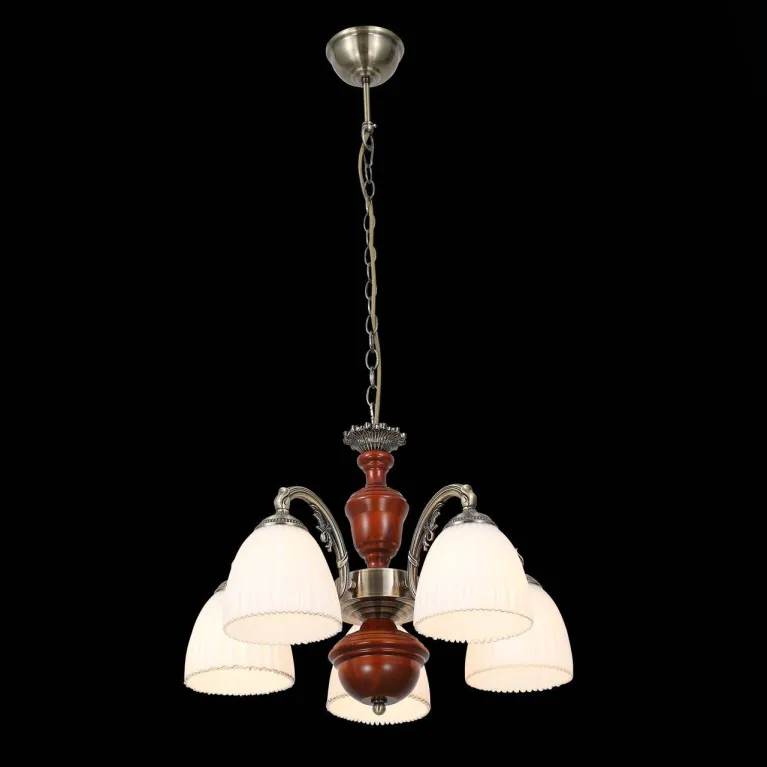 Люстра оснащена шестью источниками света с цоколем E14, что позволяет использовать лампы различного типа, в том числе энергосберегающие и светодиодные. Суммарная мощность ламп составляет 60 Вт, что обеспечивает достаточное освещение пространства площадью до 30 квадратных метров.