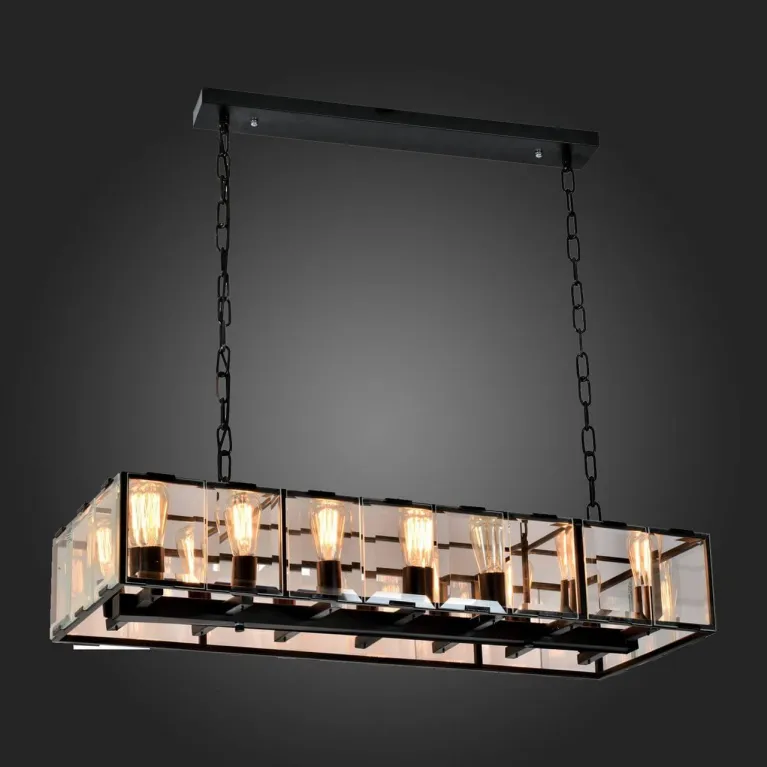 Корпус люстры выполнен из прочного металла с черным матовым покрытием, который прекрасно гармонирует с современным интерьером. Плафоны изготовлены из высококачественного стекла и имеют лаконичную цилиндрическую форму, что придает изделию стильный и утонченный вид.
