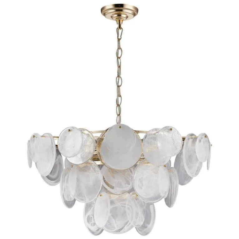 Люстра оснащена восемнадцатью источниками света, что обеспечивает яркое и равномерное освещение пространства. Она прекрасно подходит для гостиной, столовой или спальни, добавляя уюта и элегантности вашему дому. Основание выполнено из прочного металла, что гарантирует долговечность и надежность конструкции.