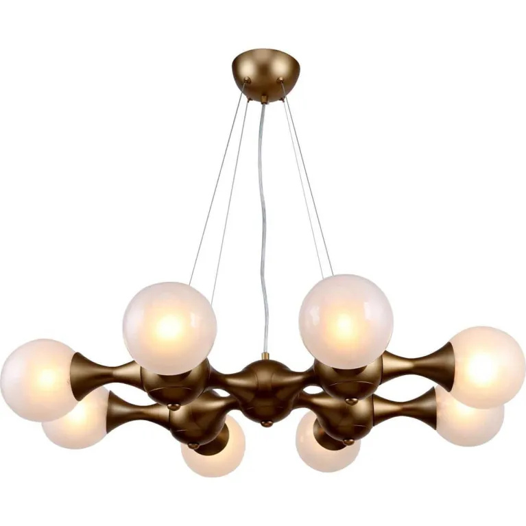 Люстра оснащена восемью лампами, что обеспечивает яркое и равномерное освещение пространства. Она идеально подходит для помещений с высокими потолками благодаря своей высоте в 120 см. Основание выполнено из прочного металла, что гарантирует долговечность и надежность конструкции.