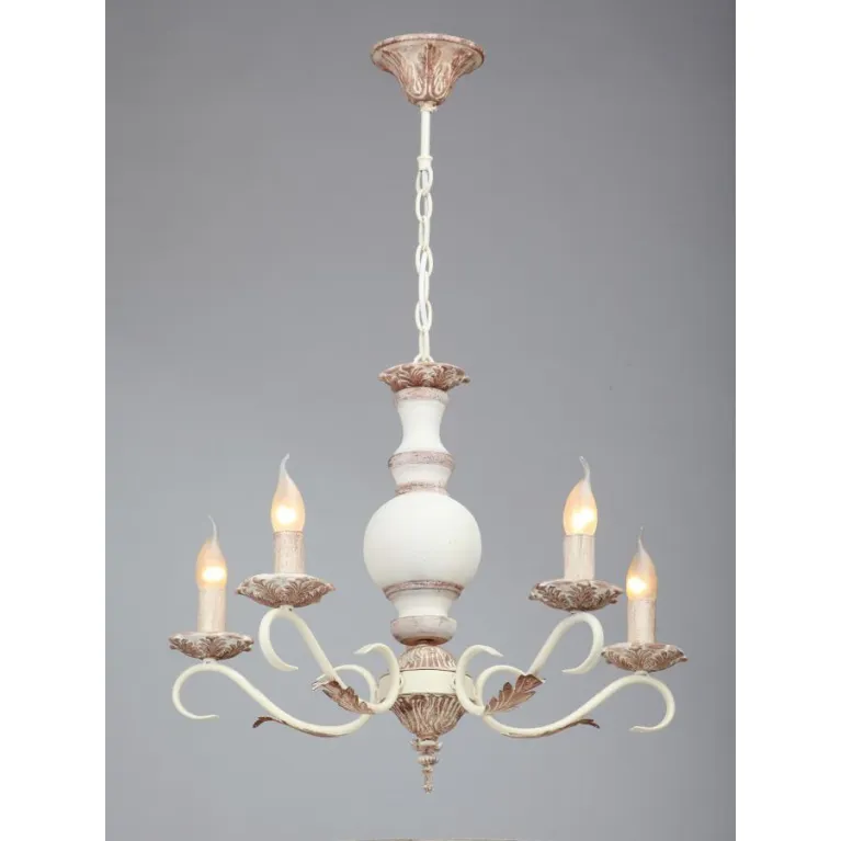 Люстра оснащена пятью лампами, что обеспечивает яркое и равномерное освещение. Она совместима с лампами типа E14, что позволяет использовать как традиционные лампы накаливания, так и энергосберегающие или светодиодные варианты, что добавляет гибкости в выборе источников света.