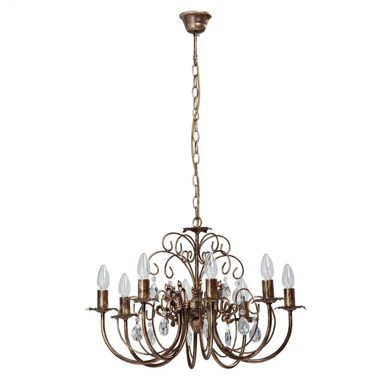 Люстра оснащена восемью лампами, что обеспечивает яркое и равномерное освещение пространства. Она идеально подходит для ламп типа E14, позволяя вам выбрать источник света с подходящим цоколем и характеристиками, будь то традиционные лампы накаливания, энергосберегающие или светодиодные.
