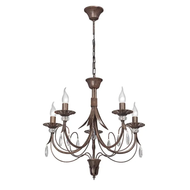Эта люстра оснащена пятью лампами, что обеспечивает яркое и равномерное освещение пространства. Она выполнена в элегантном бронзовом цвете, который прекрасно гармонирует с различными стилями интерьера, от классики до модерна.