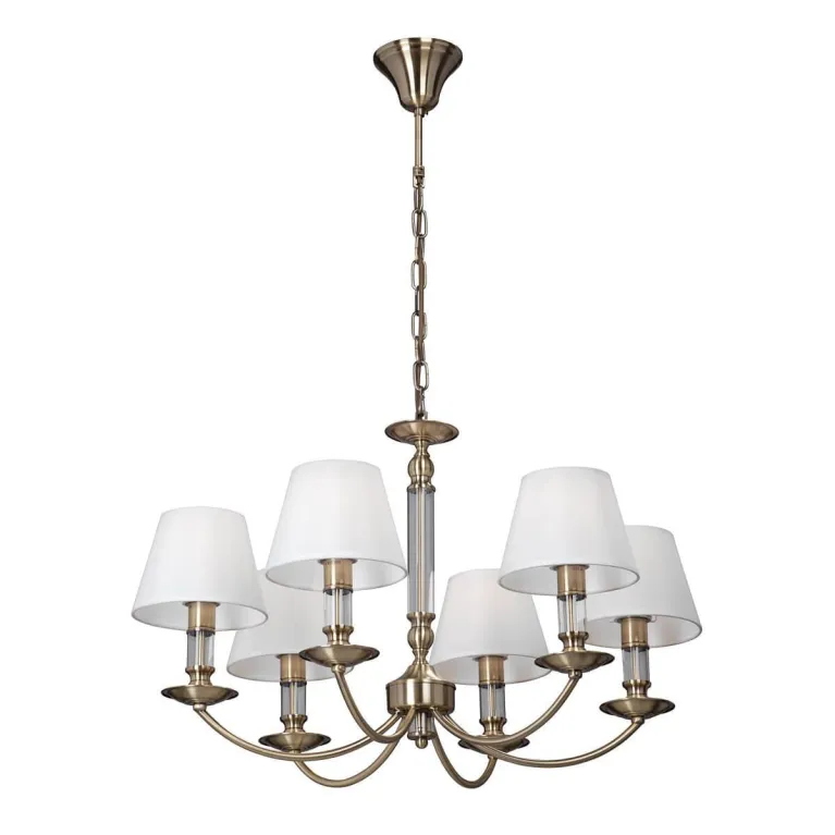 Люстра оснащена шестью лампами, что обеспечивает яркое и равномерное освещение пространства. Она идеально подходит для гостиной, столовой или спальни, добавляя уюта и гармонии в ваш дом. Основание выполнено из прочного металла, что гарантирует долговечность и надежность конструкции.