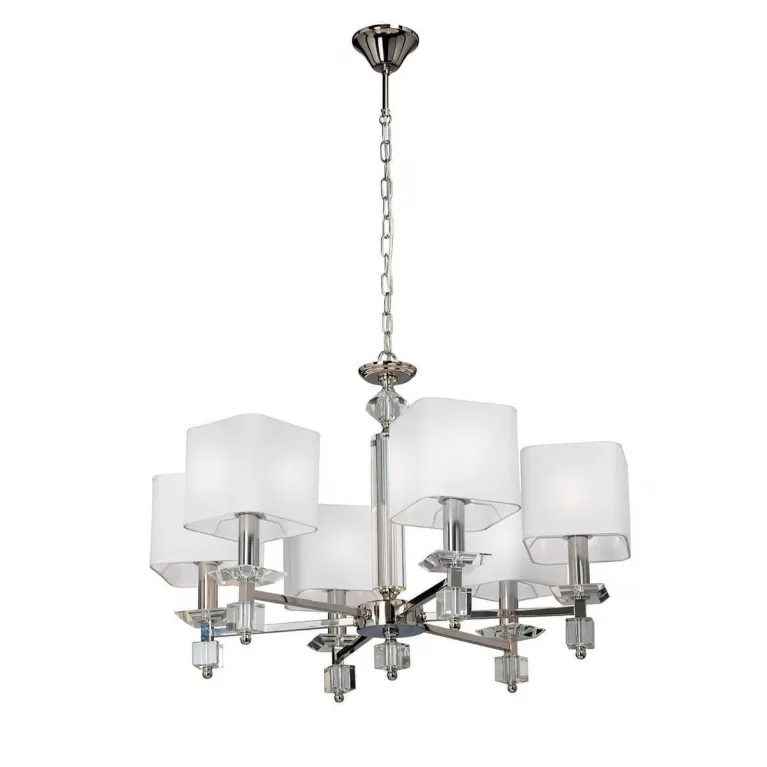 Люстра оснащена шестью лампами, что обеспечивает яркое и равномерное освещение. Она совместима с лампами типа E14, что позволяет использовать как традиционные лампы накаливания, так и энергосберегающие или светодиодные варианты, в зависимости от ваших предпочтений и потребностей.