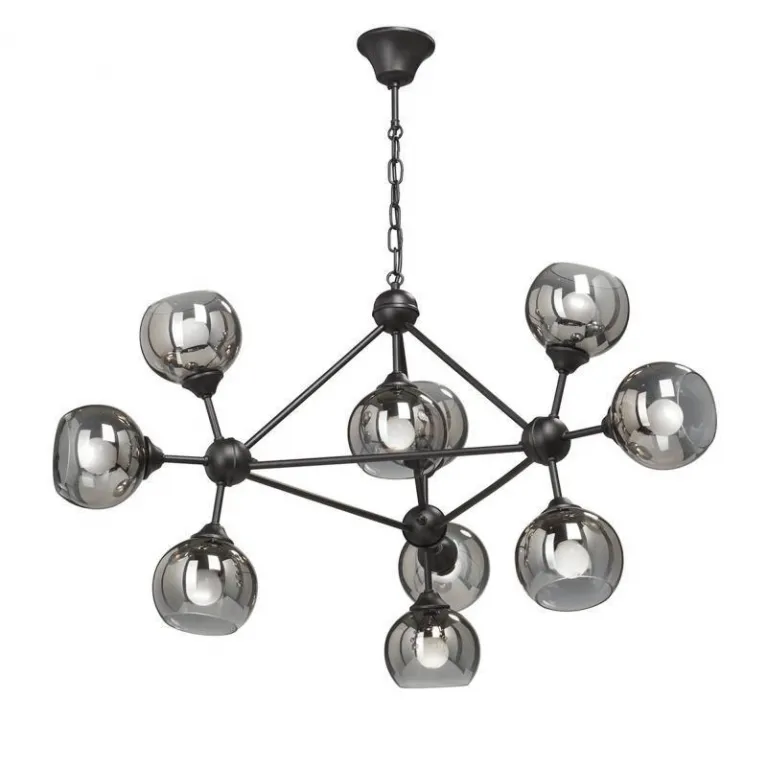Люстра оснащена десятью лампами, что обеспечивает яркое и равномерное освещение пространства. Она идеально подходит для просторных гостиной, столовой или спальни, добавляя помещению уюта и элегантности. Основание выполнено из прочного металла, что гарантирует долговечность и надежность конструкции.