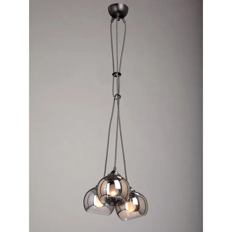 Люстра оснащена тремя лампами, что обеспечивает яркое и равномерное освещение. Она изготовлена из прочного металла с черным матовым покрытием, который прекрасно гармонирует с различными стилями интерьера. Плафоны выполнены из белого матового стекла, придающего свету мягкость и утонченность.