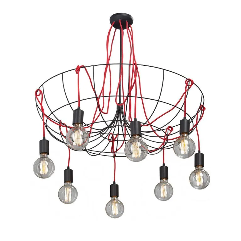 Основанием люстры служит прочный металлический каркас, окрашенный в черный цвет, который придает ей современный и стильный вид. Подвесной тип монтажа обеспечивает простоту установки и удобство в обслуживании.