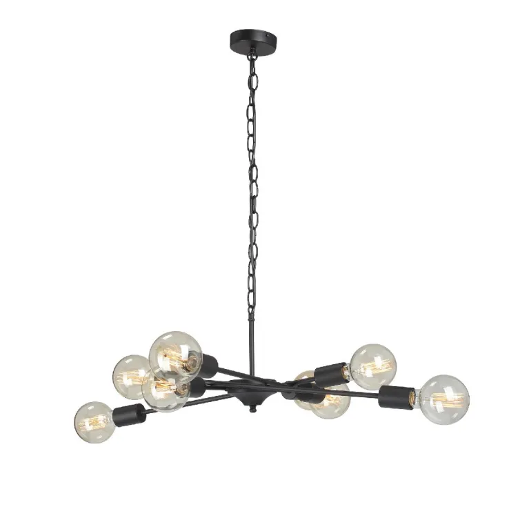 Преобладающий цвет арматуры: Черный; материал изготовления арматуры: Металл, размеры, мм: длина 740 / ширина 740 / высота 960 Общая мощность – 320 Ватт, а максимальная площадь освещения до 24 м2. Основной тип ламп, предусмотренный производителем: Накаливания с цоколем E27. В зависимости от предпочтений можно использовать лампы теплового, холодного или нейтрального света, за исключением люстр с типом цоколя LED.