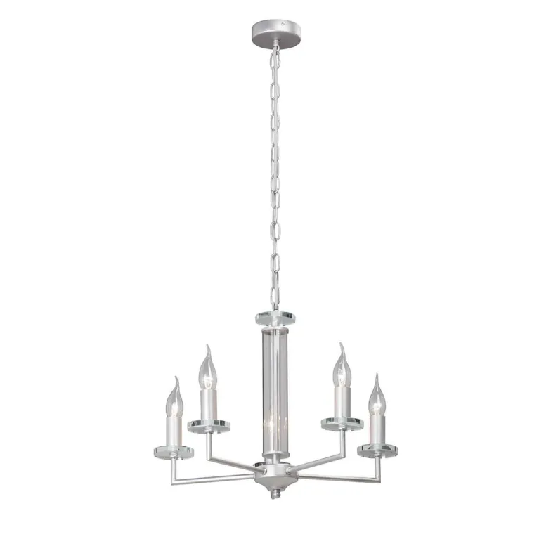 Люстра оснащена пятью лампами, что обеспечивает яркое и равномерное освещение пространства. Она идеально подходит для гостиной, столовой или спальни, добавляя уюта и элегантности вашему дому. Основание выполнено из прочного металла, что гарантирует долговечность и надежность конструкции.