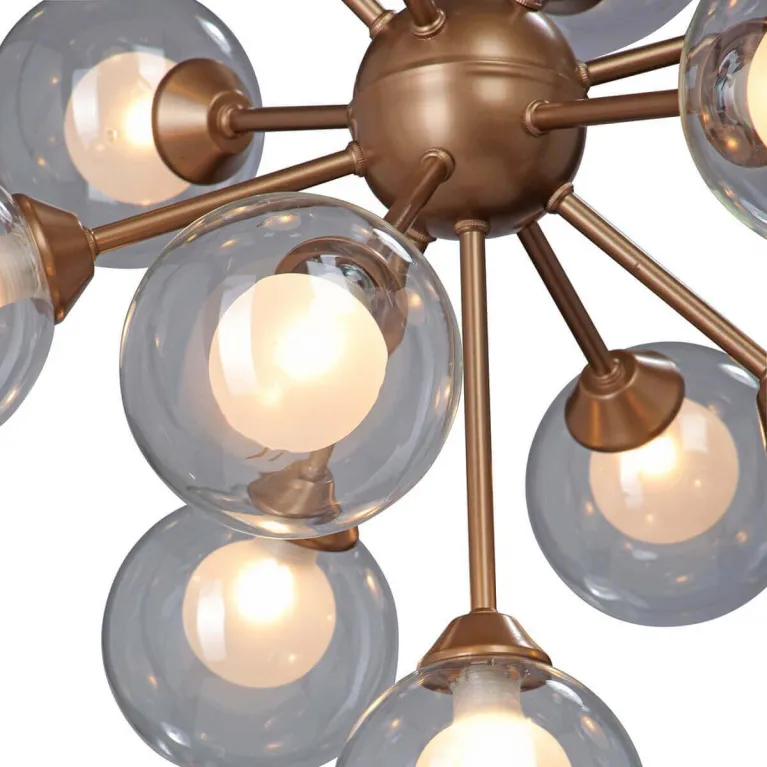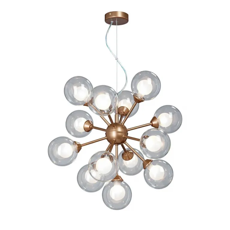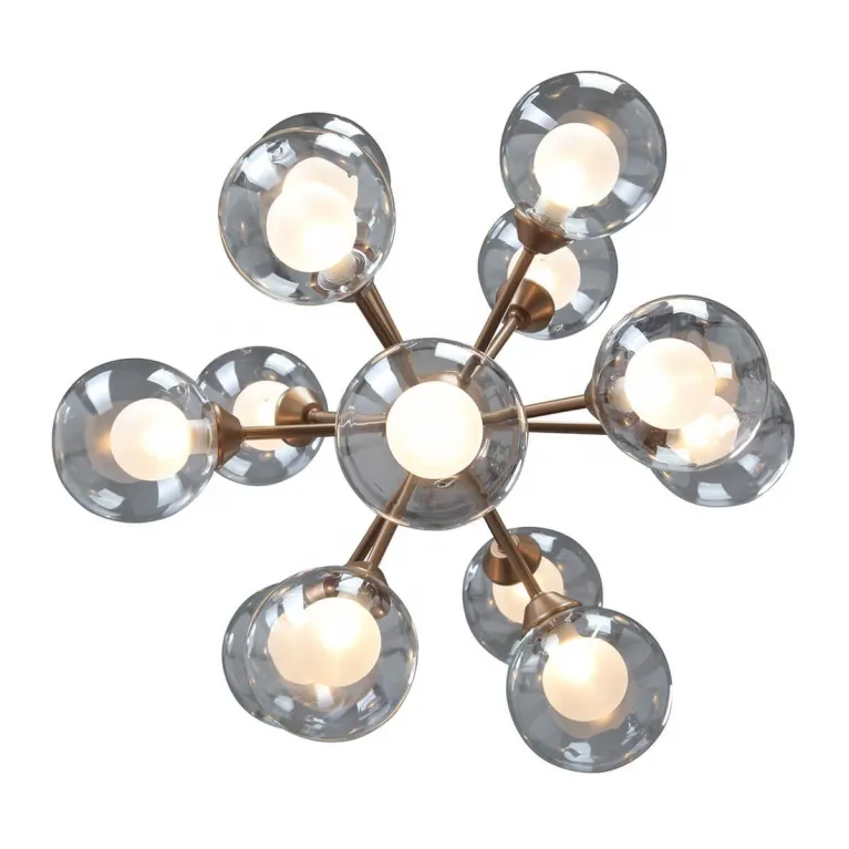 Люстра оснащена 12 лампами, которые совместимы с лампами типа E14 и могут иметь мощность до 40 Вт. Это позволяет создавать мягкое и равномерное освещение, подходящее для различных задач и настроений. Основание выполнено из прочного металла, что гарантирует долговечность и надежность конструкции.