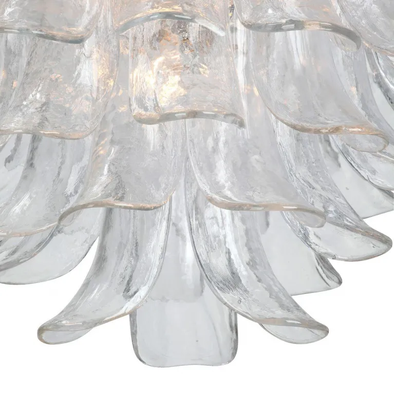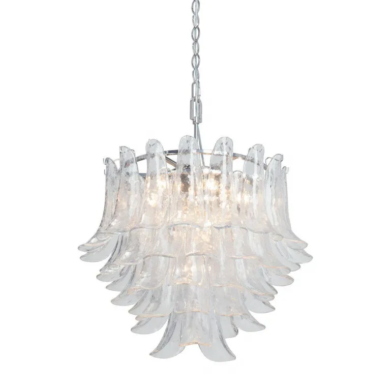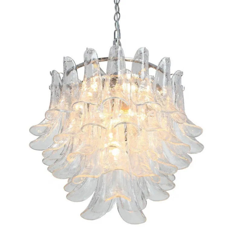 Люстра оснащена десятью лампами, что обеспечивает яркое и равномерное освещение пространства. Она идеально подходит для просторных гостиной, столовой или спальни, добавляя помещению уюта и элегантности. Основание выполнено из прочного металла, что гарантирует долговечность и надежность конструкции.