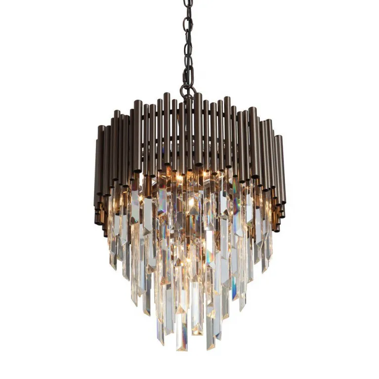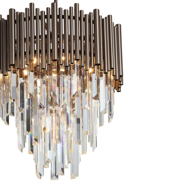 Люстра оснащена шестью лампами, что обеспечивает яркое и равномерное освещение пространства. Она идеально подходит для помещений с высокими потолками, поскольку её высота составляет 820 мм.