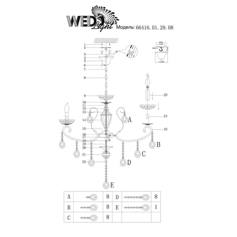 Люстра оснащена шестью источниками света с цоколем E14, что позволяет использовать различные типы ламп, включая энергосберегающие и светодиодные. Суммарная мощность ламп - 36 Вт, что обеспечивает яркое и равномерное освещение пространства, создавая уютную атмосферу в вашем доме.