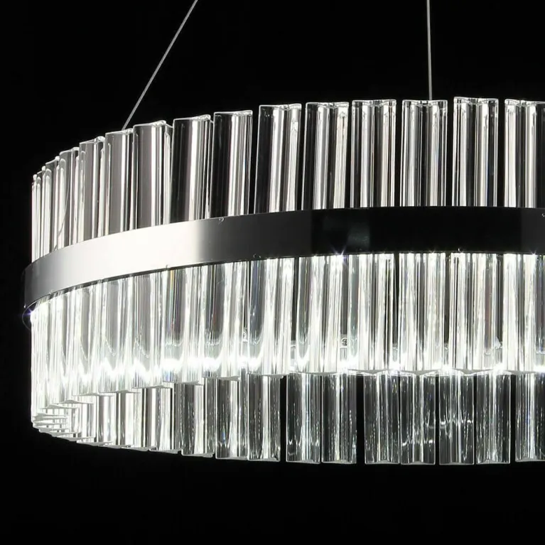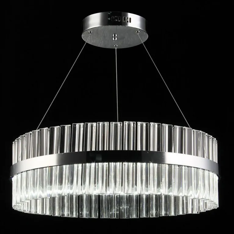 Люстра оснащена светодиодными источниками света, которые обеспечивают яркое и равномерное освещение. Суммарная мощность светодиодов составляет 96 Вт, что эквивалентно традиционным лампам накаливания, но при этом потребляет значительно меньше энергии, что делает эту модель энергоэффективной и экономичной в использовании.