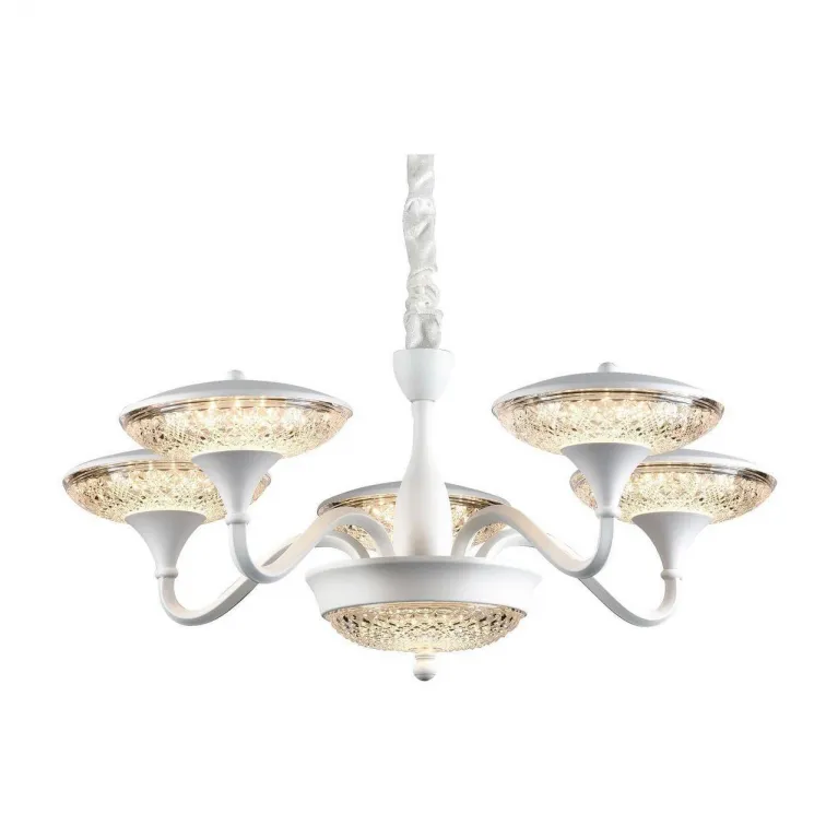Люстра оснащена пятью светодиодами, которые обеспечивают яркое и равномерное освещение. Суммарная мощность светодиодов составляет 90 Вт, что эквивалентно традиционным лампам накаливания, но при этом потребляет значительно меньше энергии, что делает эту модель энергоэффективной и экономичной в использовании.