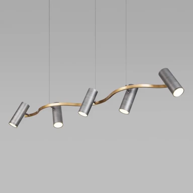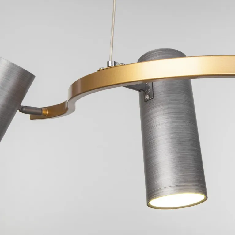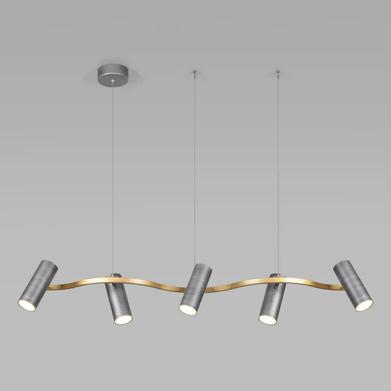 Подвесная светодиодная люстра Eurosvet Spacer 90103/5 матово-серая с золотом сочетает в себе современный стиль и высокое качество исполнения. Этот светильник станет идеальным дополнением для гостиной, столовой или спальни, добавляя в интерьер утонченную элегантность и уют.