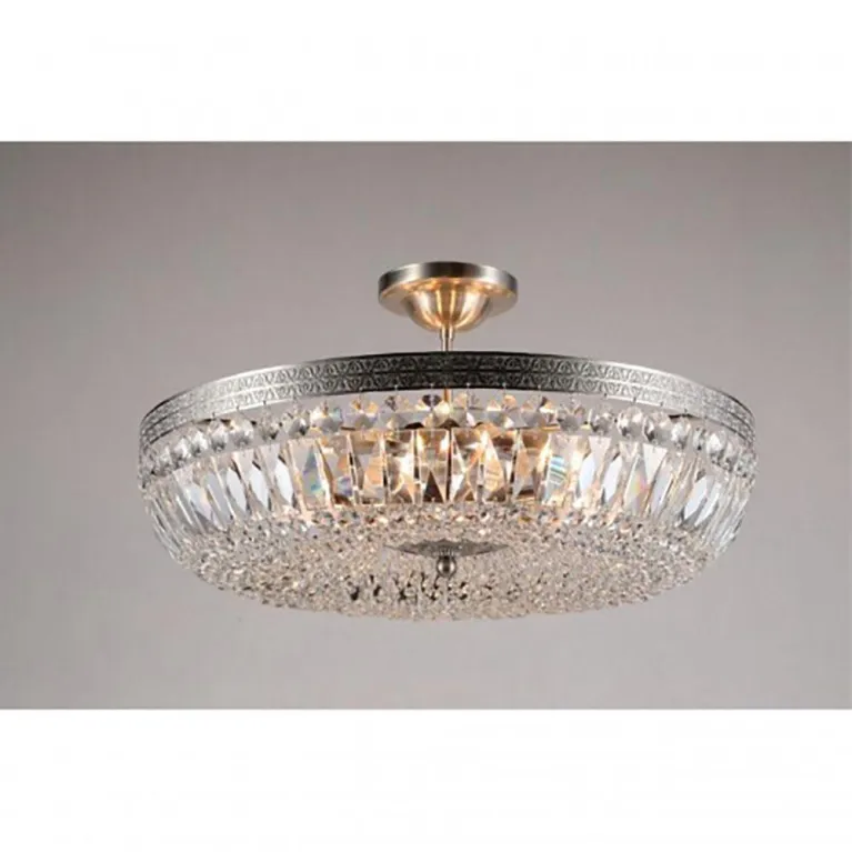 Светильник имеет компактные размеры и потолочное крепление, что делает его удобным для установки в помещениях с низкими потолками. Общая высота люстры составляет 400 мм, диаметр — 500 мм.