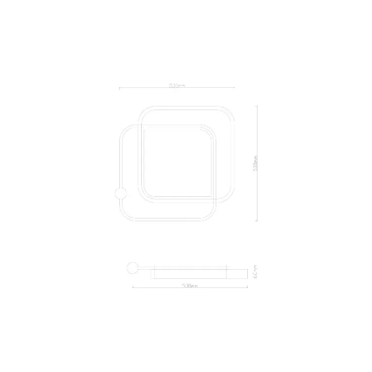 Преобладающий цвет плафонов: Белый, арматуры: Черный; материал изготовления арматуры: Металл, размеры, мм: длина 500 / ширина 500 / высота 60 Общая мощность – 74 Ватт, а максимальная площадь освещения до 12 м2. Основной тип ламп, предусмотренный производителем: Светодиодная с цоколем LED. В зависимости от предпочтений можно использовать лампы теплового, холодного или нейтрального света, за исключением люстр с типом цоколя LED.