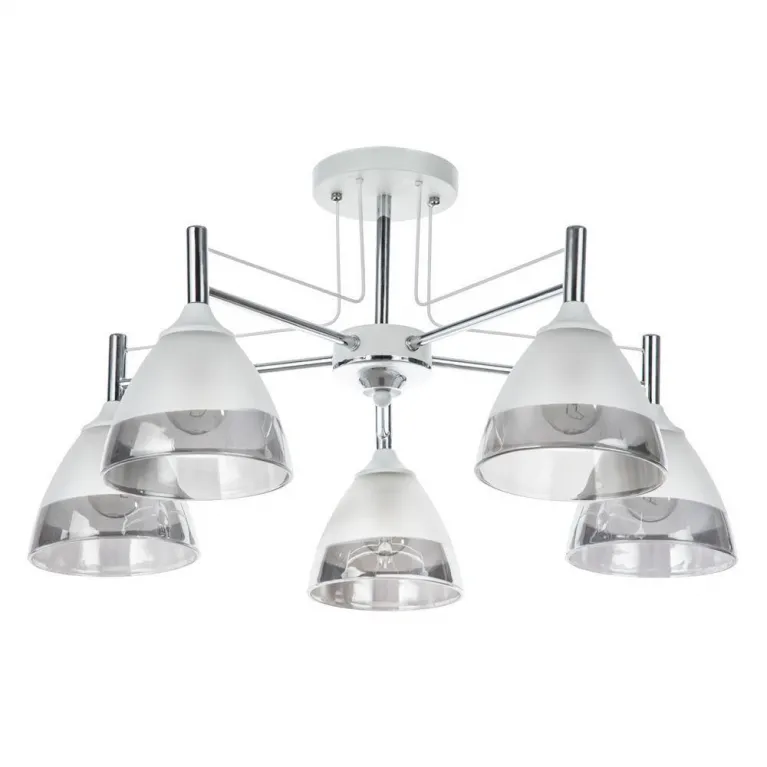 Люстра оснащена пятью лампами типа E14, что позволяет использовать различные виды светильников, включая энергосберегающие и светодиодные. Суммарная мощность ламп - 300 Вт, что обеспечивает яркое и равномерное освещение пространства.