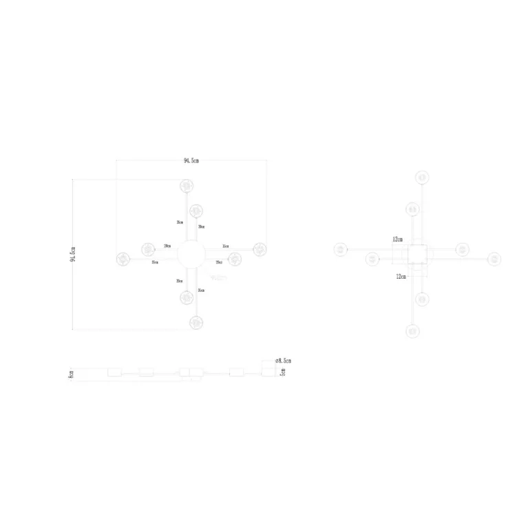 Преобладающий цвет плафонов: Черный, арматуры: Черный; материал изготовления арматуры: Металл, размеры, мм: длина 950 / ширина 950 / высота 80 Общая мощность – 96 Ватт, а максимальная площадь освещения до 12 м2. Основной тип ламп, предусмотренный производителем: Светодиодная с цоколем GX53. В зависимости от предпочтений можно использовать лампы теплового, холодного или нейтрального света, за исключением люстр с типом цоколя LED.
