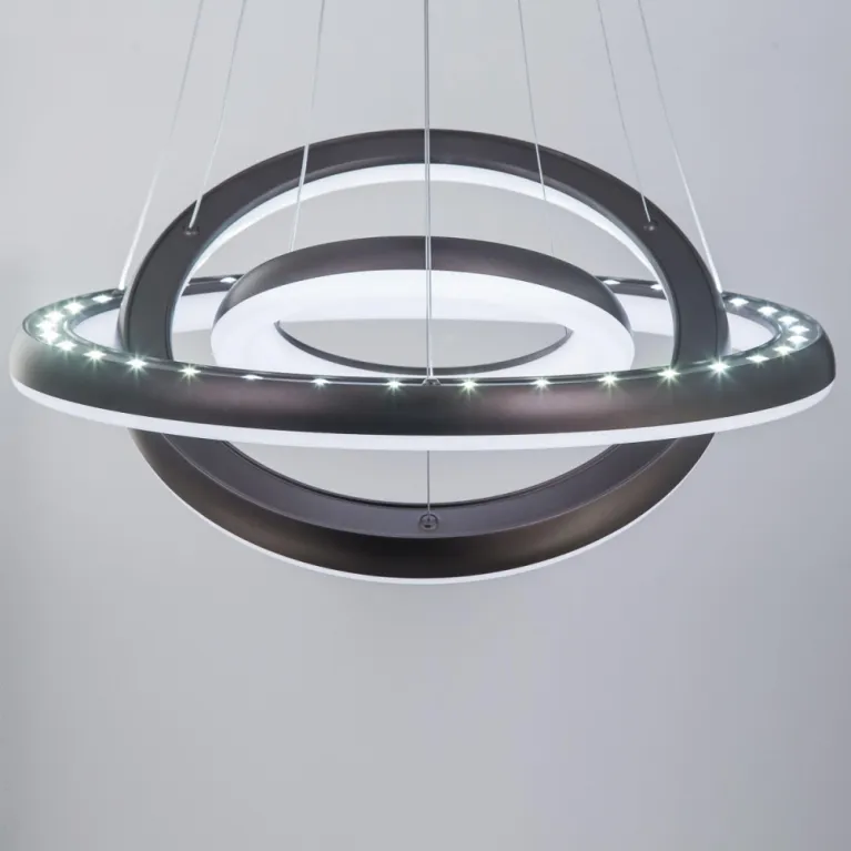 Люстра оснащена светодиодными источниками света, которые обеспечивают яркое и равномерное освещение. Суммарная мощность светодиодов составляет 96 Вт, что эквивалентно традиционным лампам накаливания, но при этом потребляет значительно меньше энергии, что делает эту модель энергоэффективной и экономичной в использовании.