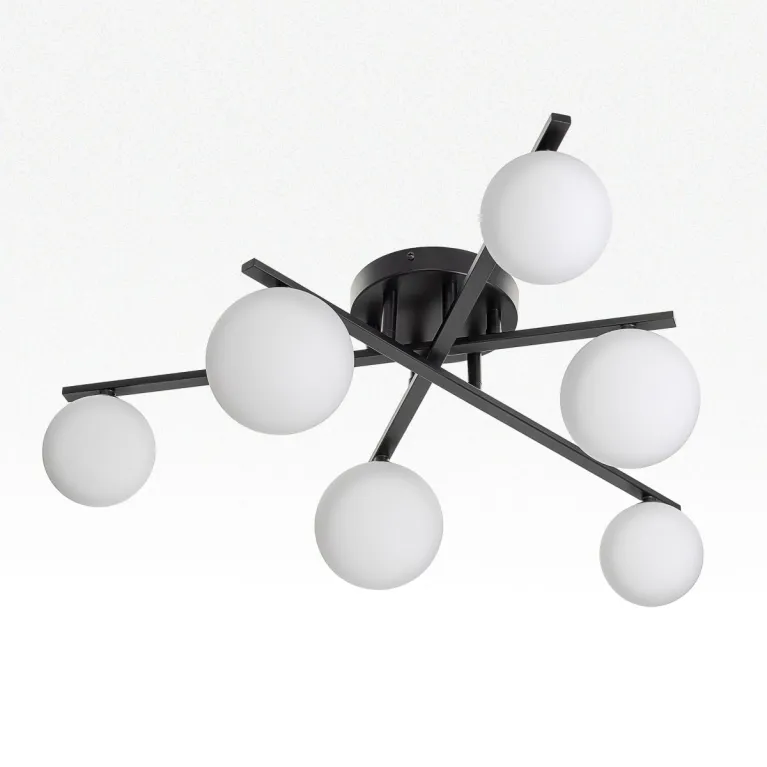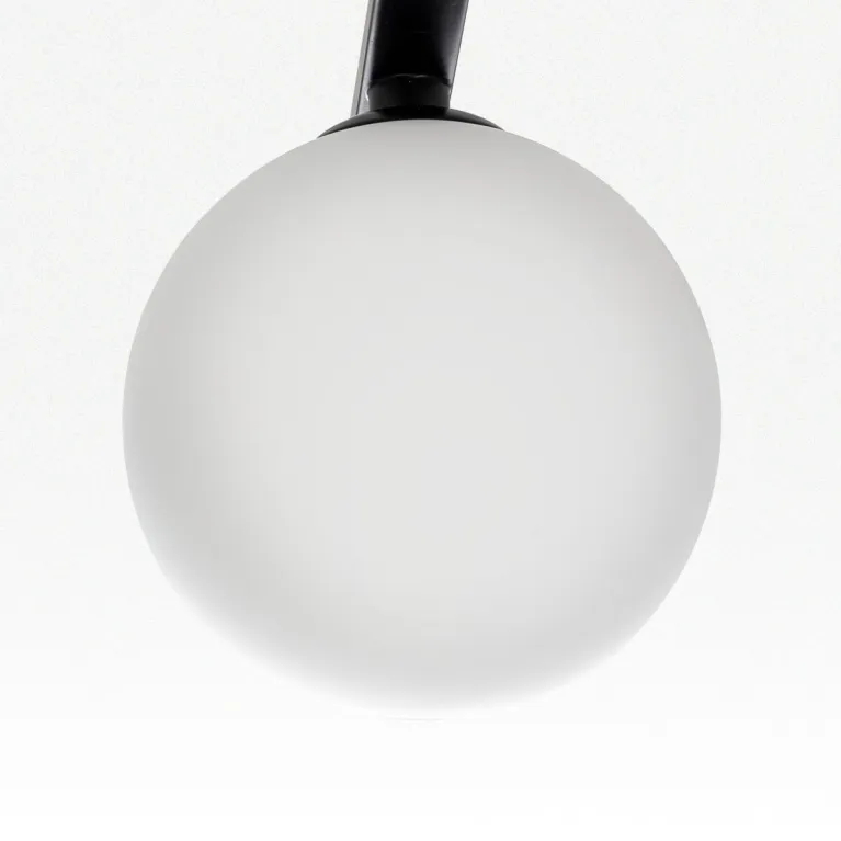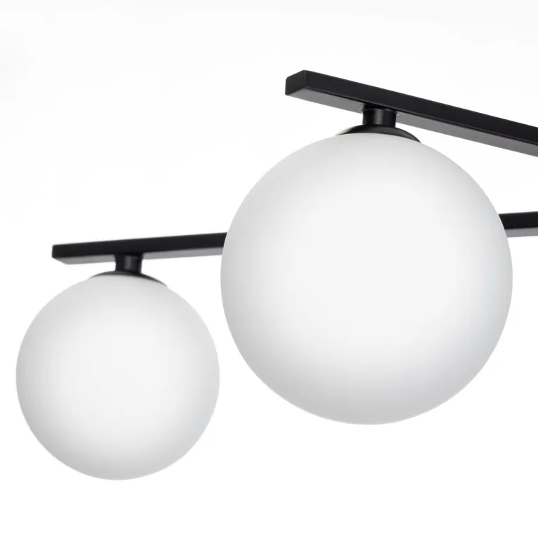 Преобладающий цвет плафонов: Белый, арматуры: Черный; материал изготовления арматуры: Металл, размеры, мм: / высота 210 / диаметр 710. Общая мощность – 90 Ватт. Основной тип ламп, предусмотренный производителем: Светодиодная с цоколем G9. В зависимости от предпочтений можно использовать лампы теплового, холодного или нейтрального света, за исключением люстр с типом цоколя LED.
