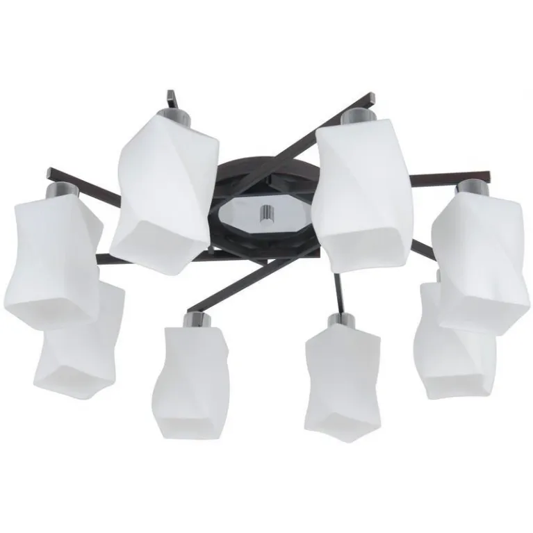 Корпус люстры выполнен из качественного металла с черным матовым покрытием, который прекрасно гармонирует с различными стилями интерьера. Плафоны из белого матового стекла обеспечивают мягкое и равномерное рассеивание света, создавая комфортное освещение в помещении.