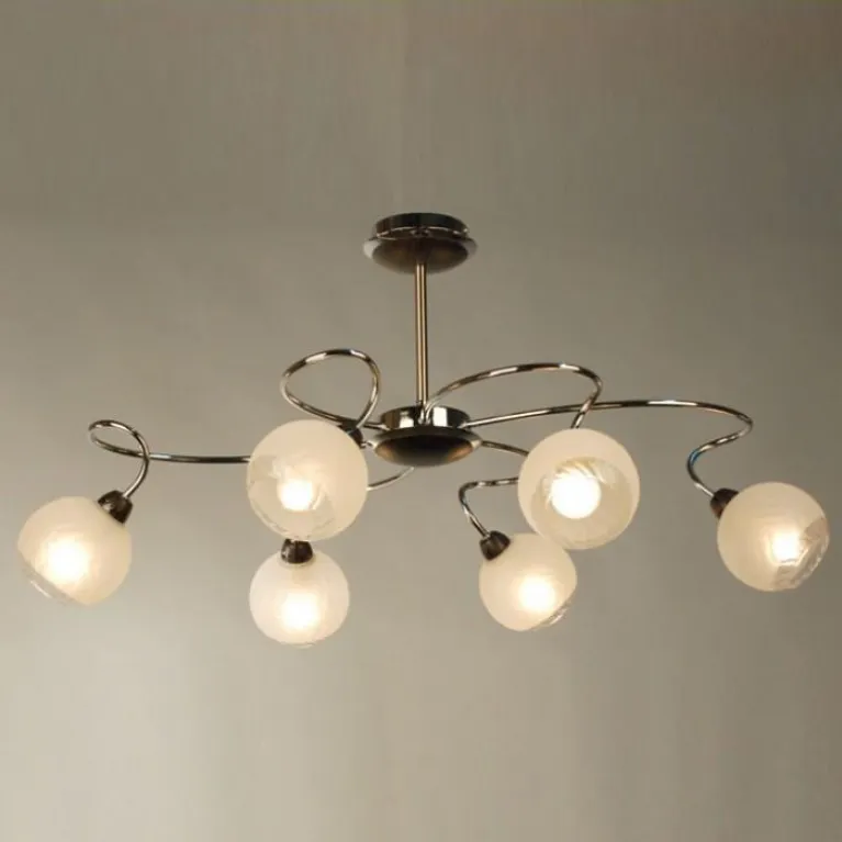 Люстра оснащена пятью лампами типа E14, что обеспечивает яркое и равномерное освещение. Патрон E14 позволяет использовать как традиционные лампы накаливания, так и энергосберегающие или светодиодные, что делает эту модель универсальной и современной.
