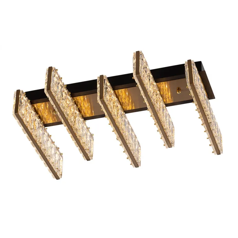 Преобладающий цвет плафонов: Прозрачный, арматуры: Черный; материал изготовления арматуры: Металл, размеры, мм: длина 490 / ширина 380 / высота 130 Общая мощность – 36 Ватт, а максимальная площадь освещения до 12 м2. Основной тип ламп, предусмотренный производителем: Светодиодная с цоколем LED. В зависимости от предпочтений можно использовать лампы теплового, холодного или нейтрального света, за исключением люстр с типом цоколя LED.