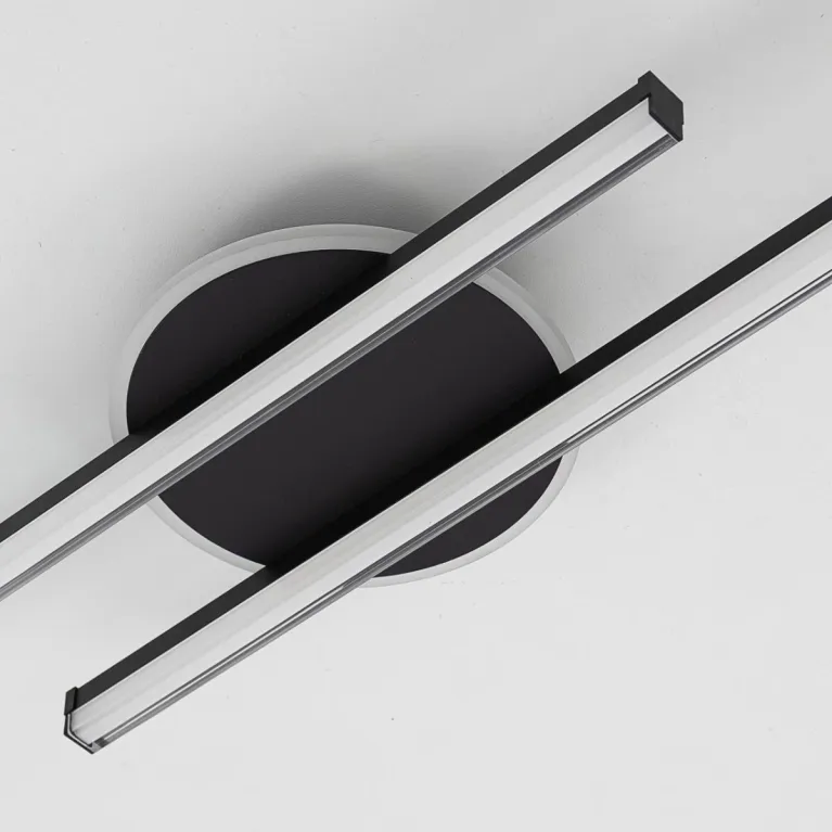Преобладающий цвет плафонов: Прозрачный, арматуры: Черный; материал изготовления арматуры: Металл, размеры, мм: длина 1200 / ширина 195 / высота 60 Общая мощность – 40 Ватт, а максимальная площадь освещения до 10 м2. Основной тип ламп, предусмотренный производителем: Светодиодная с цоколем LED. В зависимости от предпочтений можно использовать лампы теплового, холодного или нейтрального света, за исключением люстр с типом цоколя LED.