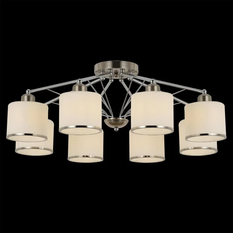 Люстра оснащена восемью лампами типа E27, что обеспечивает яркое и равномерное освещение. Она прекрасно подходит для гостиной, столовой или спальни, добавляя уюта и комфорта вашему дому. Основание выполнено из прочного металла, что гарантирует долговечность и надежность конструкции.