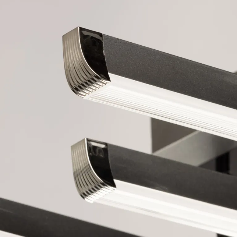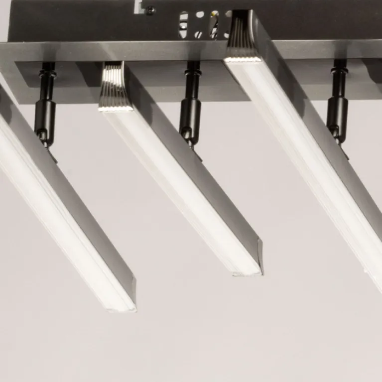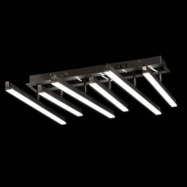Преобладающий цвет плафонов: Белый, арматуры: Черный; материал изготовления арматуры: Металл, размеры, мм: длина 620 / ширина 620 / высота 145 Общая мощность – 120 Ватт, а максимальная площадь освещения до 33 м2. Основной тип ламп, предусмотренный производителем: Светодиодная с цоколем LED. В зависимости от предпочтений можно использовать лампы теплового, холодного или нейтрального света, за исключением люстр с типом цоколя LED.